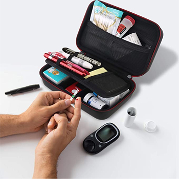 Hard materials of this diabetic organizer case Shields all your diabetic accessories from impact, especially while you are on the move. soft fabric lining prevents scratches to your blood sugar testing supplies.