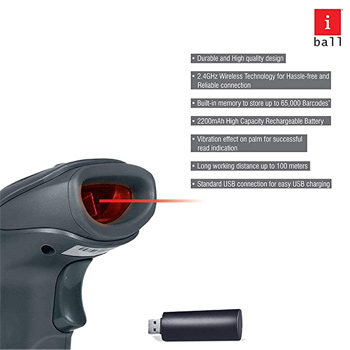High performance Laser Barcode Scanner with sharp aim-and-shoot scanning.